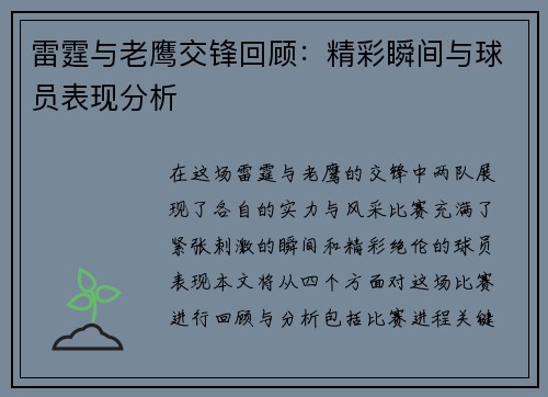 本文将围绕莱红牛与曼联的最新战况进行深入分析,并对双方近期表现进行全面对比。文章首先概述两队在最近比赛中的表现,包括进攻和防守的特点、战术安排以及伤病情况。接着,从四个方面详细探讨两队在球员状态、战术体系、历史交锋记录及未来赛程等方面的异同。通过这些分析,可以更清晰地理解莱红牛和曼联目前的竞技状态及其对后续比赛可能产生的影响。希望通过这篇文章,读者能够获得更为全面的信息,提升对两队赛事的关注与理解...